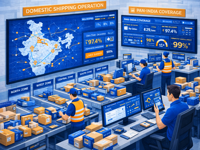 Industry-leading 99.5% on-time delivery rate with AI-powered route optimization and real-time tracking across 29,000+ pin codes.